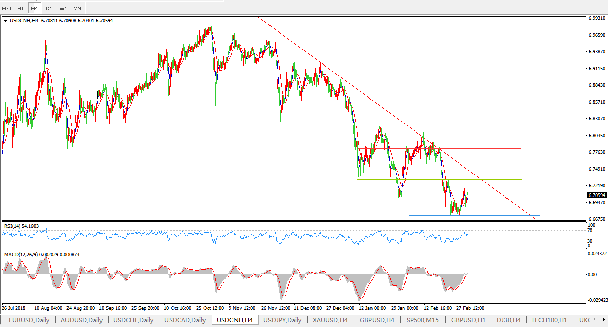 美元兑人民币USDCNH  4小时图: