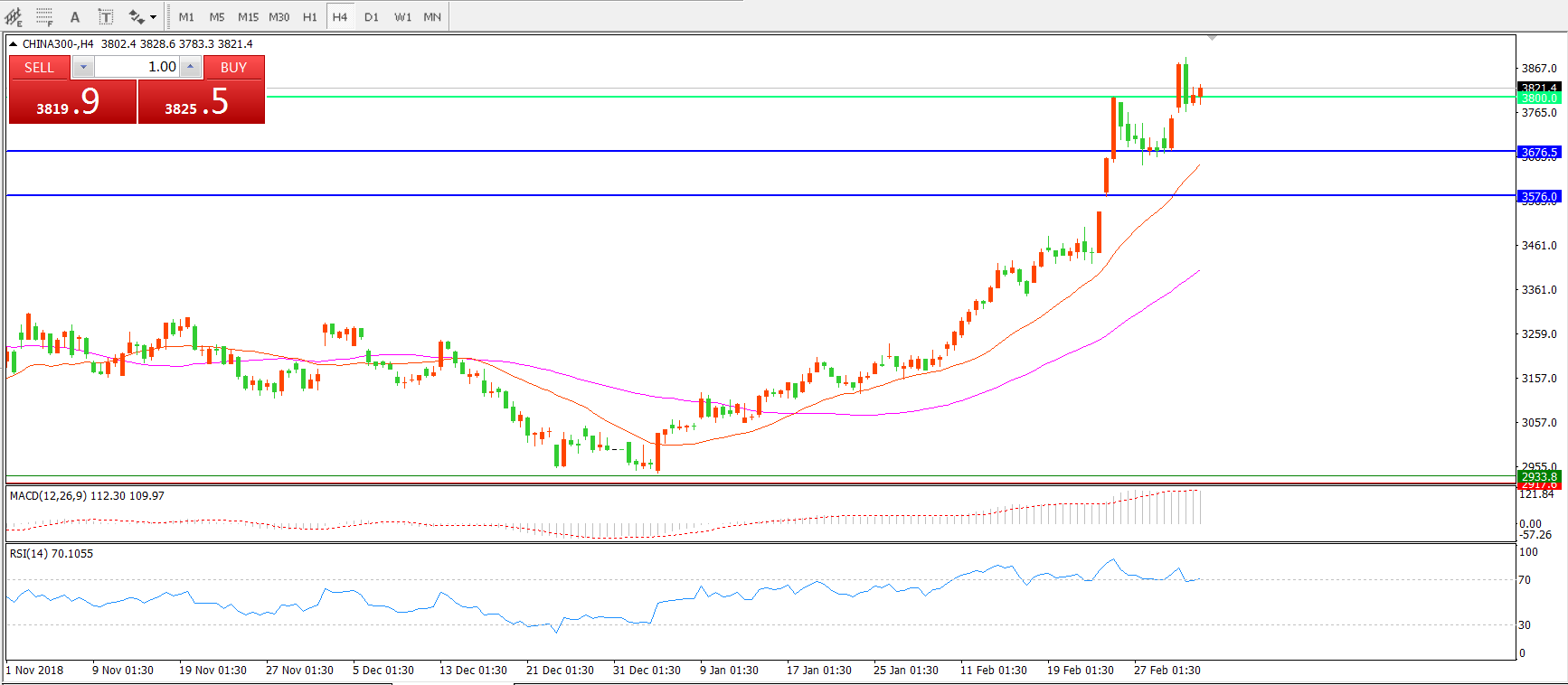 中华指数300 CHINA300 4小时图