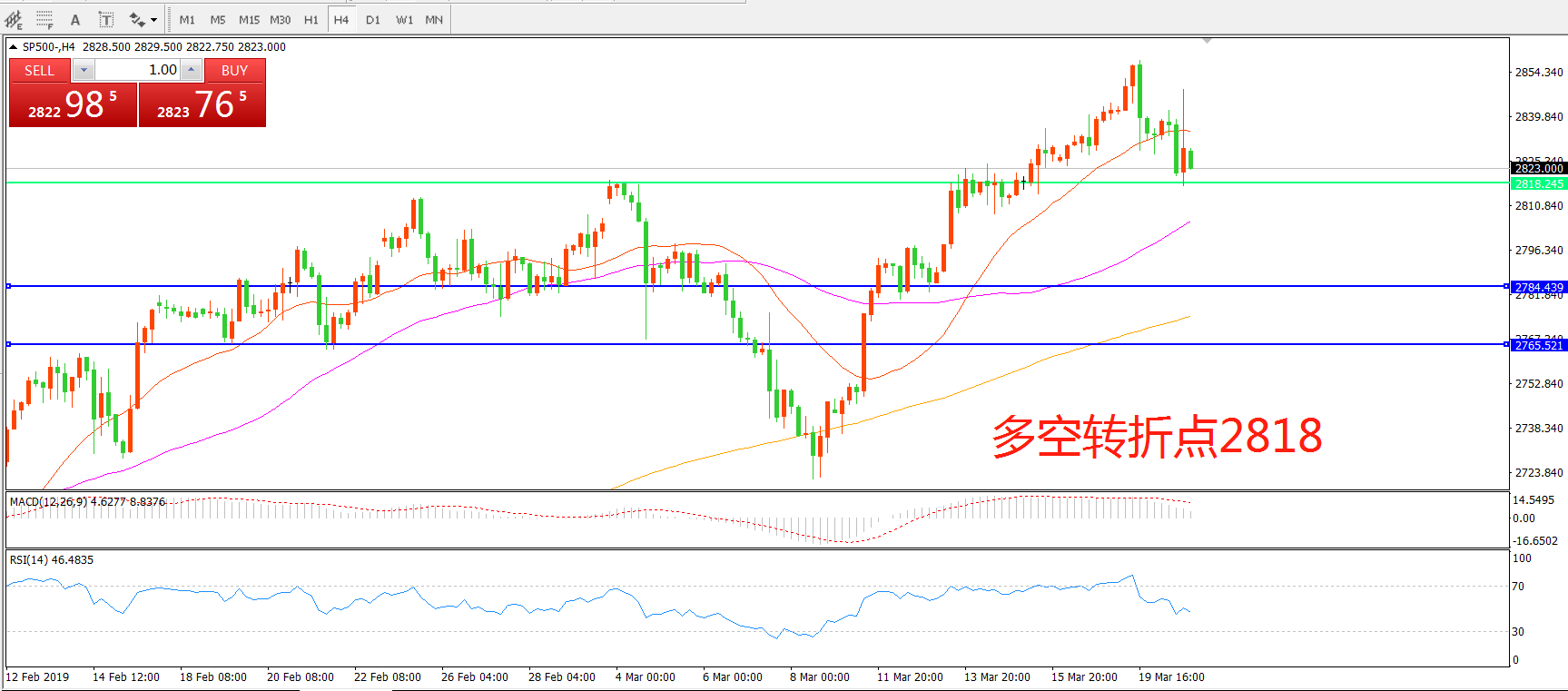 交易策略:在2818之下看跌,目标2764 2750