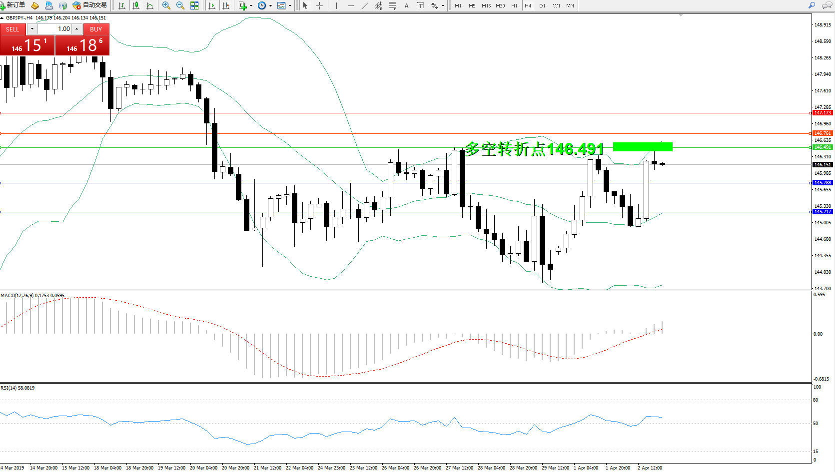 交易策略:146.491下方看跌,目标145.788145.217