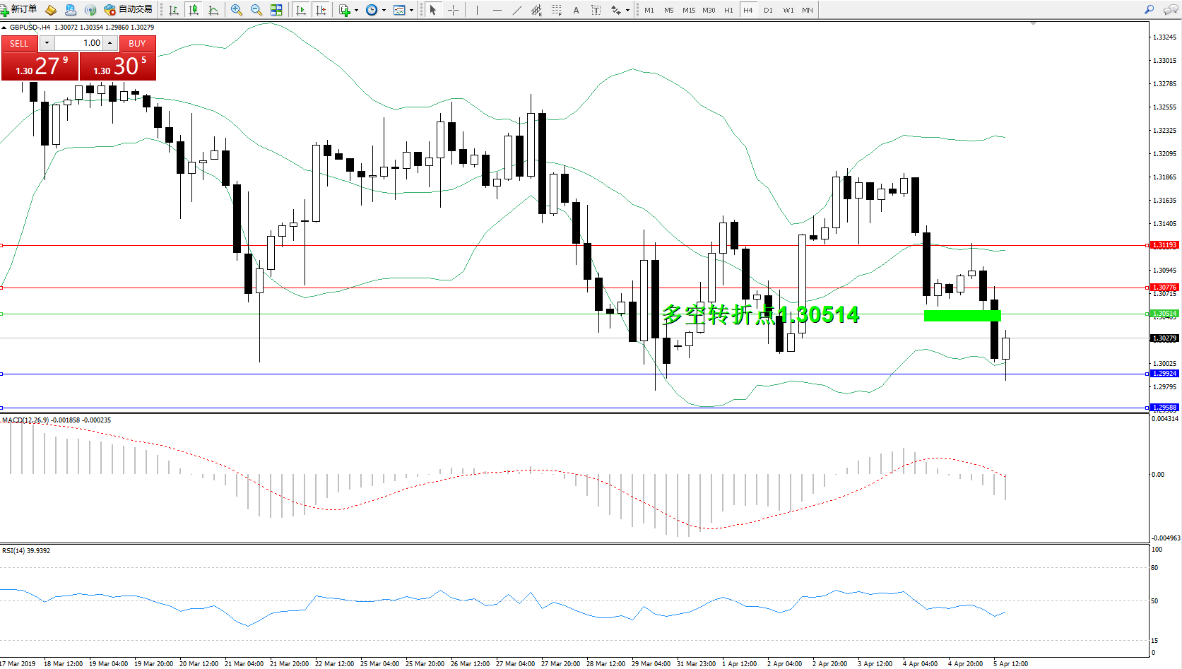 交易策略:1.30514下方看跌,目标1.299241.29588