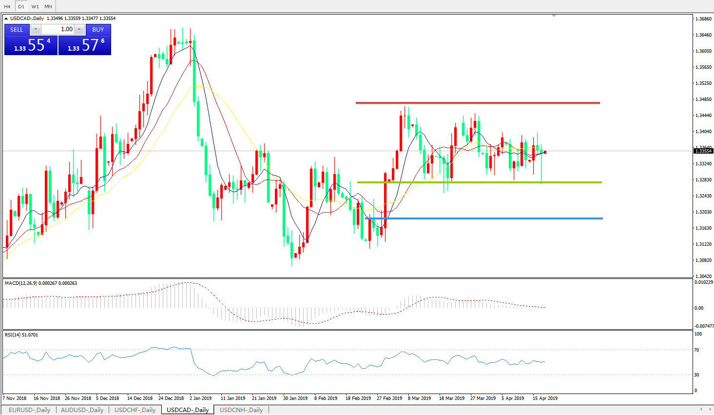 美元兑加元USDCAD 日线图: