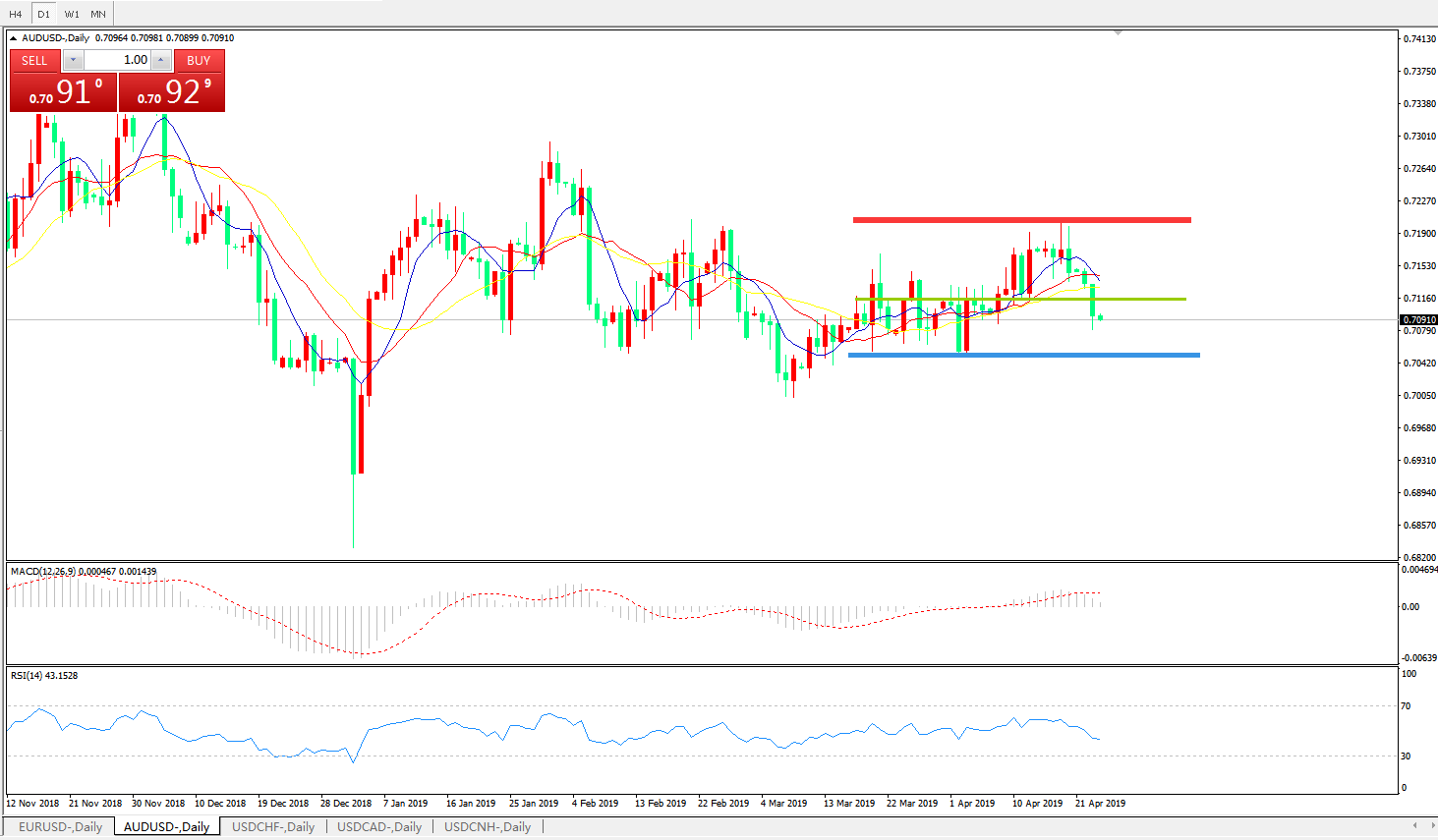 交易策略:在0.7110之下,看跌,目标价位为0.7060,然后为0.7000。