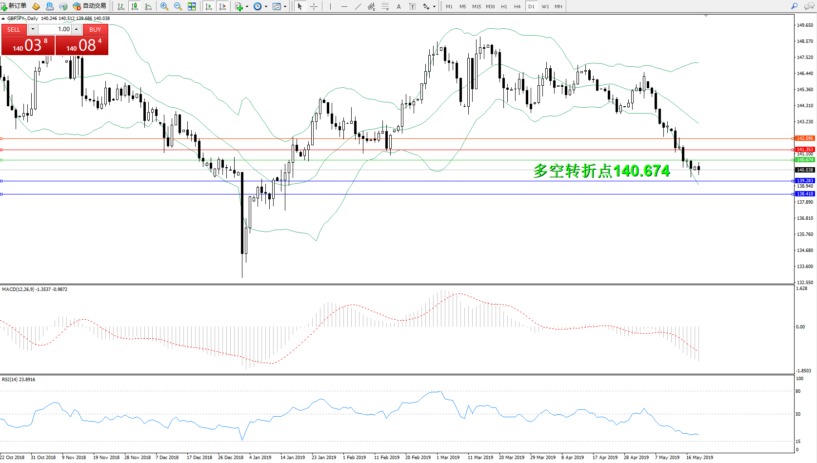 交易策略:140.674下方看跌,目标139.283138.410