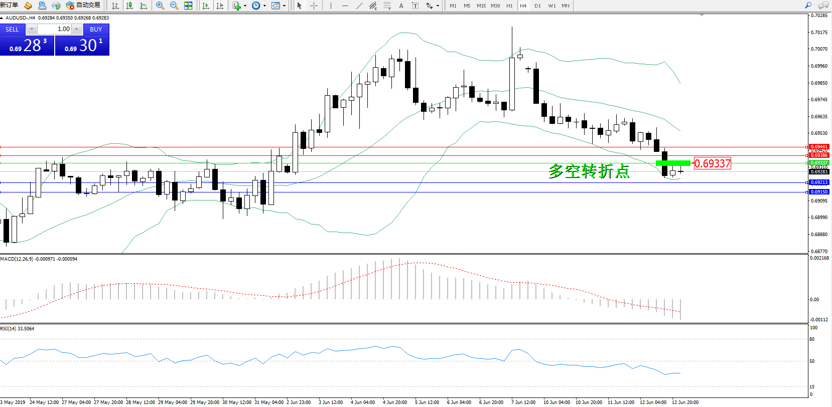 交易策略:0.69337下方看跌,目标0.692130.69150