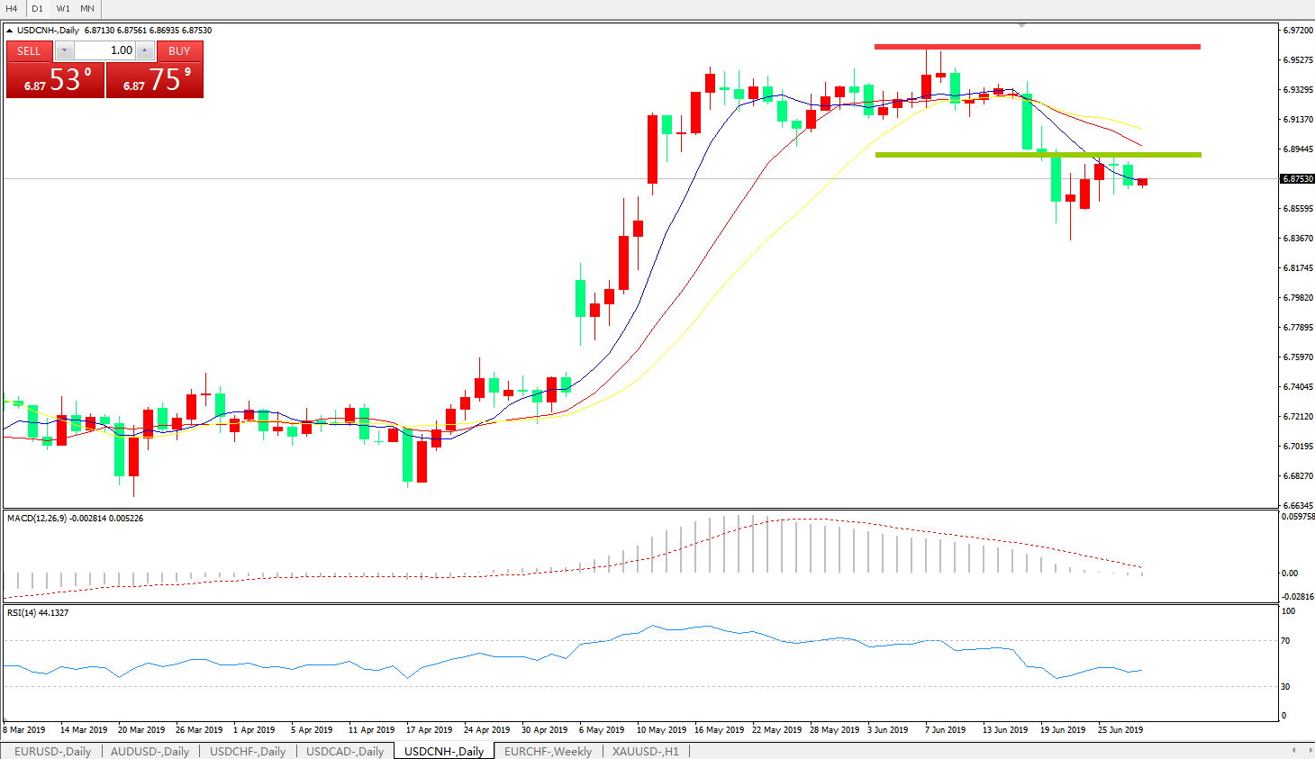 交易策略6.8880之下,看跌,目标价位为6.8100,然后为6.7600