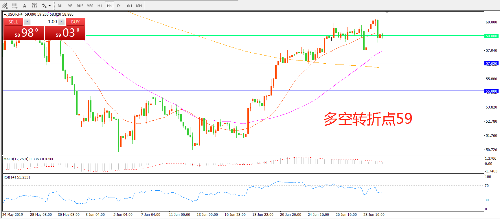 多空转折点:59.00