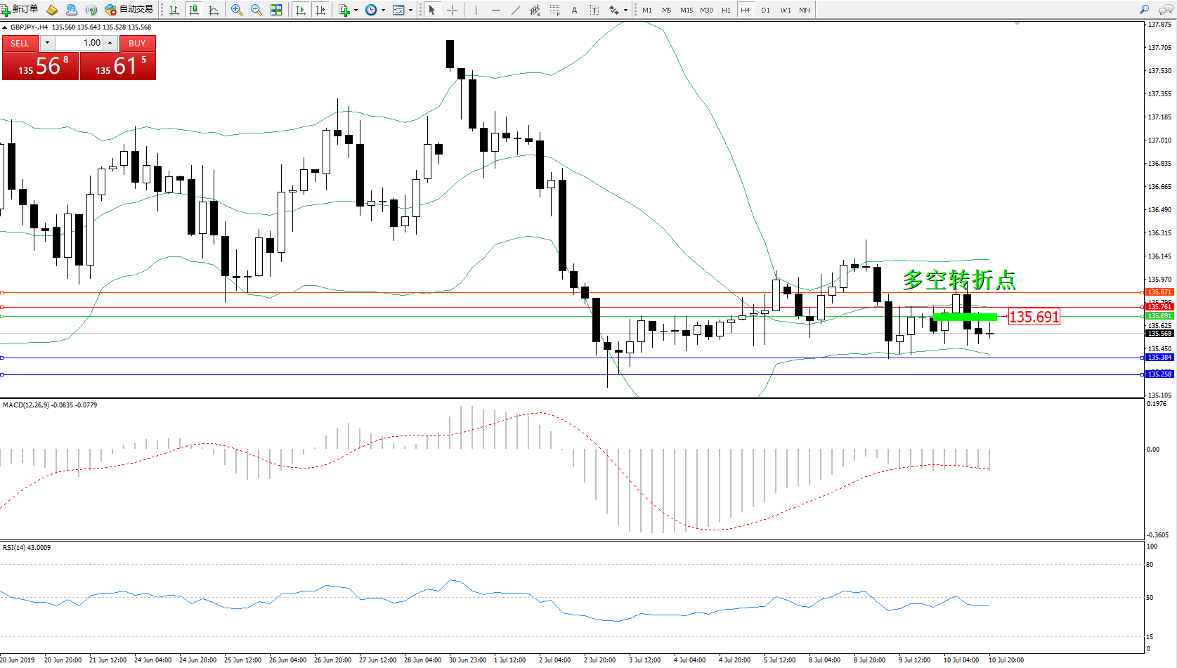 交易策略:135.691下方看跌,目标135.384135.258