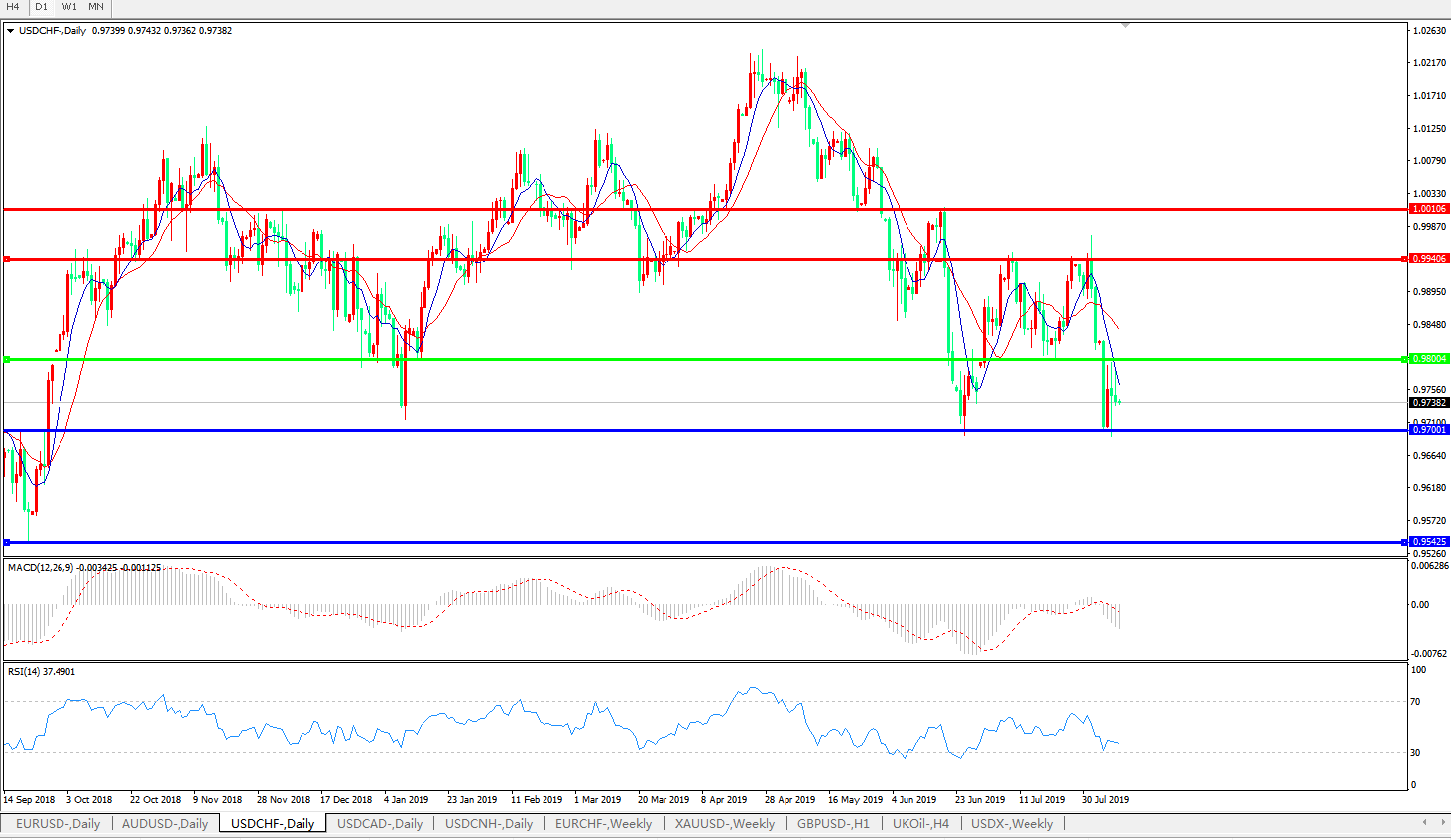 美元兑瑞郎USDCHF 日线图: