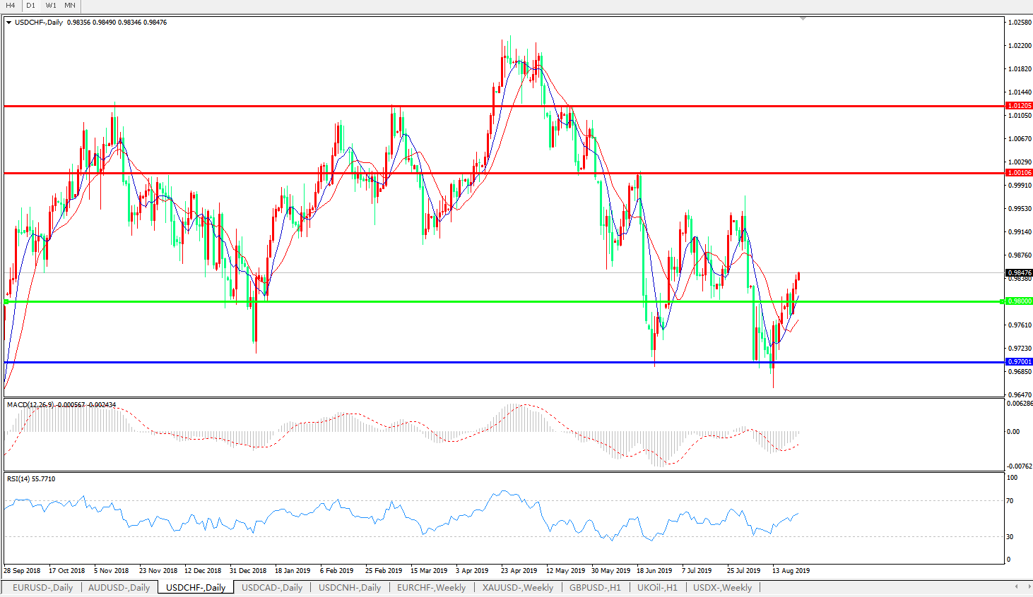 美元兑瑞郎USDCHF 日线图: