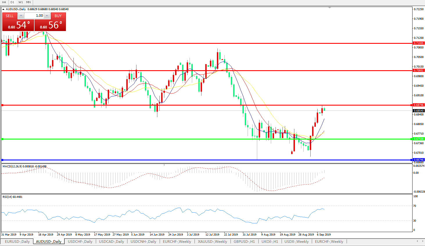 澳元兑美元AUDUSD 日线图:
