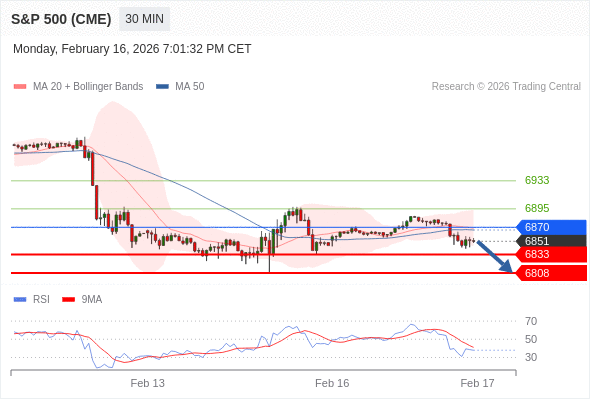 在 6870 之下,看跌,目标价位为 6833 ,然后为 6808 。