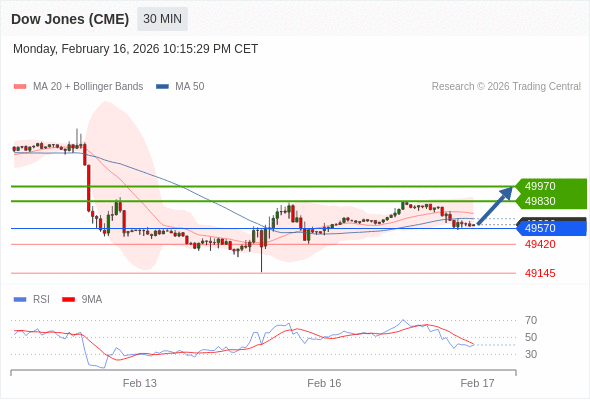 在 49570 之上,看涨,目标价位为 49830 ,然后为 49970 。