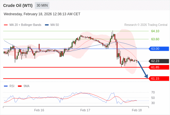 在 63.00 之下,看跌,目标价位为 61.85 ,然后为 61.15 。