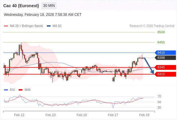 在 8410 之下,看跌,目标价位为 8345 ,然后为 8315 。