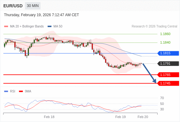 交易策略: 在 1.1815 之下,看跌,目标价位为 1.1765 ,然后为 1.1745 。