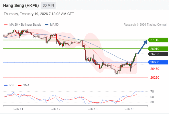 交易策略: 在 26600 之上,看涨,目标价位为 26950 ,然后为 27110 。