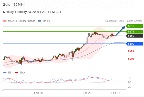 在 5100 之上,看涨,目标价位为 5176 ,然后为 5210 。