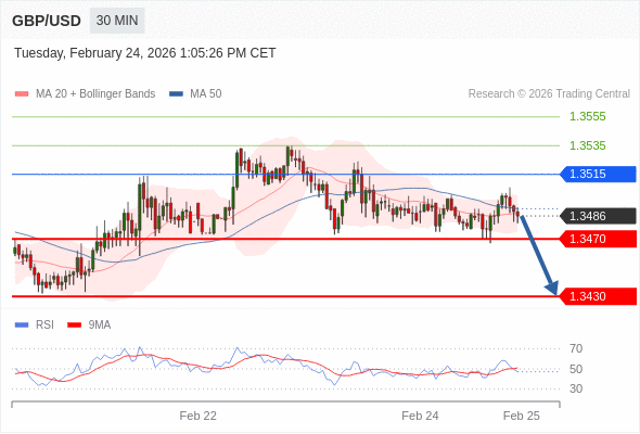 英镑/美元 当日内: 存在压力。