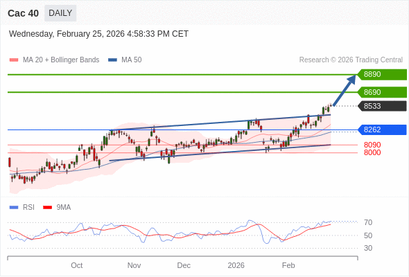 Cac 40 短线: 新一轮上升。
