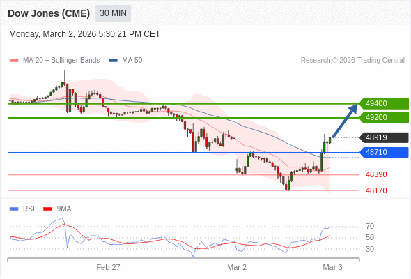 在 48710 之上,看涨,目标价位为 49200 ,然后为 49400 。