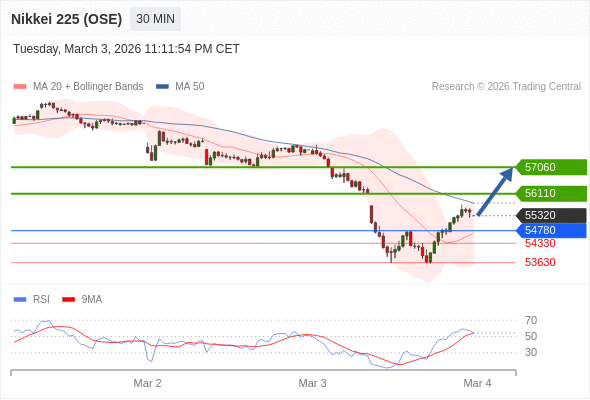 在 54780 之上,看涨,目标价位为 56110 ,然后为 57060 。