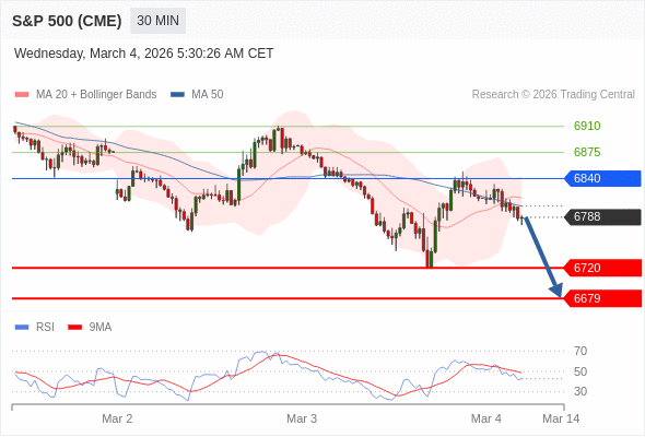 在 6840 之下,看跌,目标价位为 6720 ,然后为 6679 。