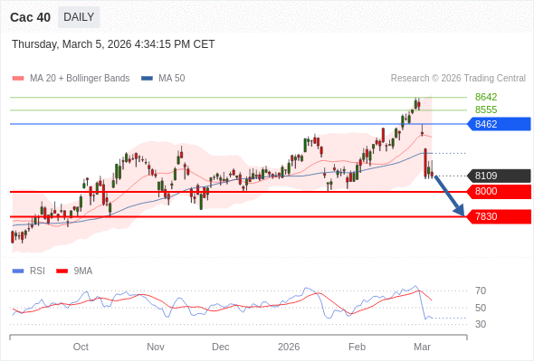 Cac 40 短线: 没有明显变化趋势。
