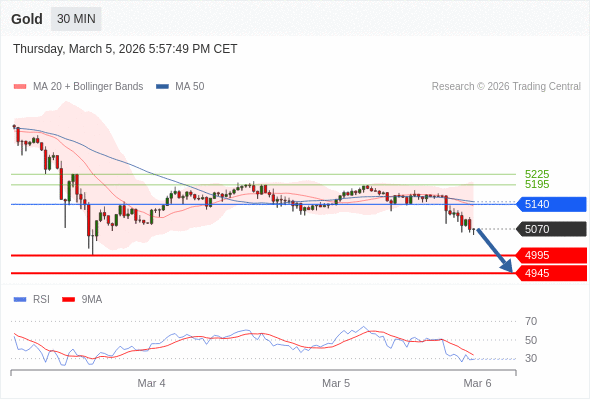 在 5140 之下,看跌,目标价位为 4995 ,然后为 4945 。