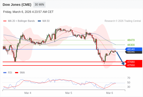 在 48140 之下,看跌,目标价位为 47680 ,然后为 47550 。