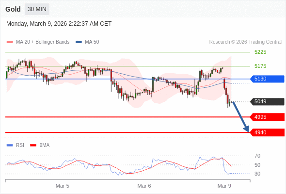 在 5130 之下,看跌,目标价位为 4995 ,然后为 4940 。