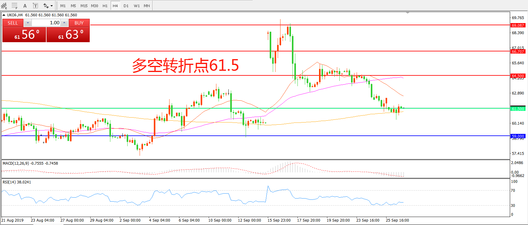 多空转折点:61.50