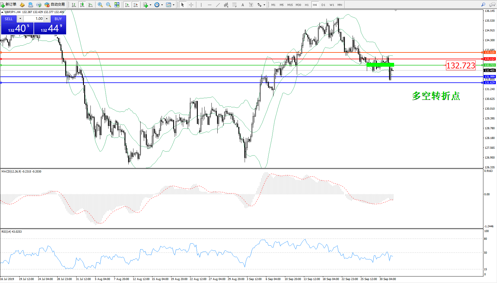 交易策略:132.723下方看跌,目标131.999、131.629