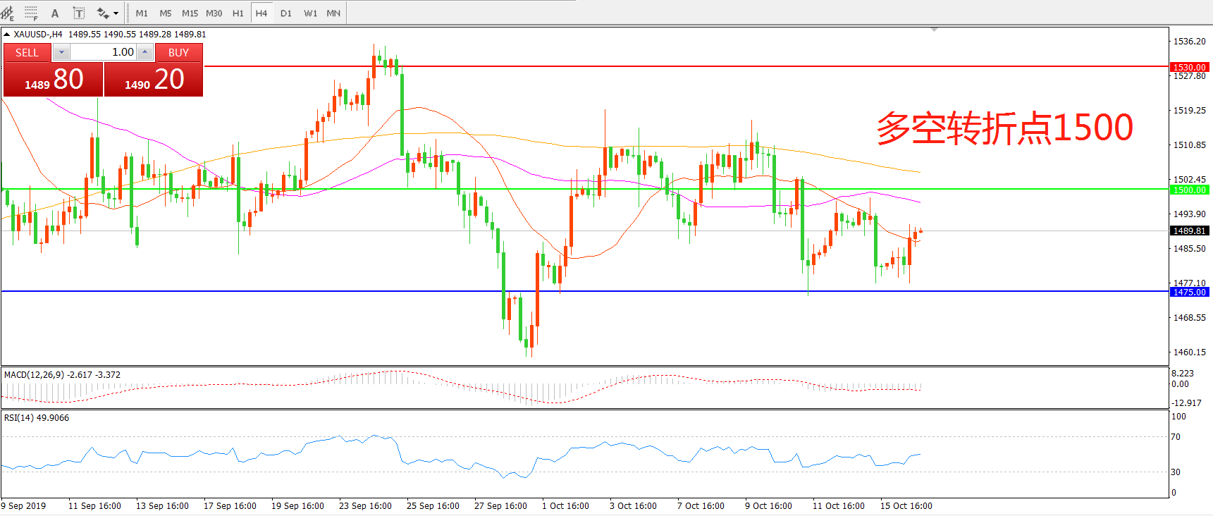 交易策略:在1500.00之下看跌,目标1475.00 1450.00