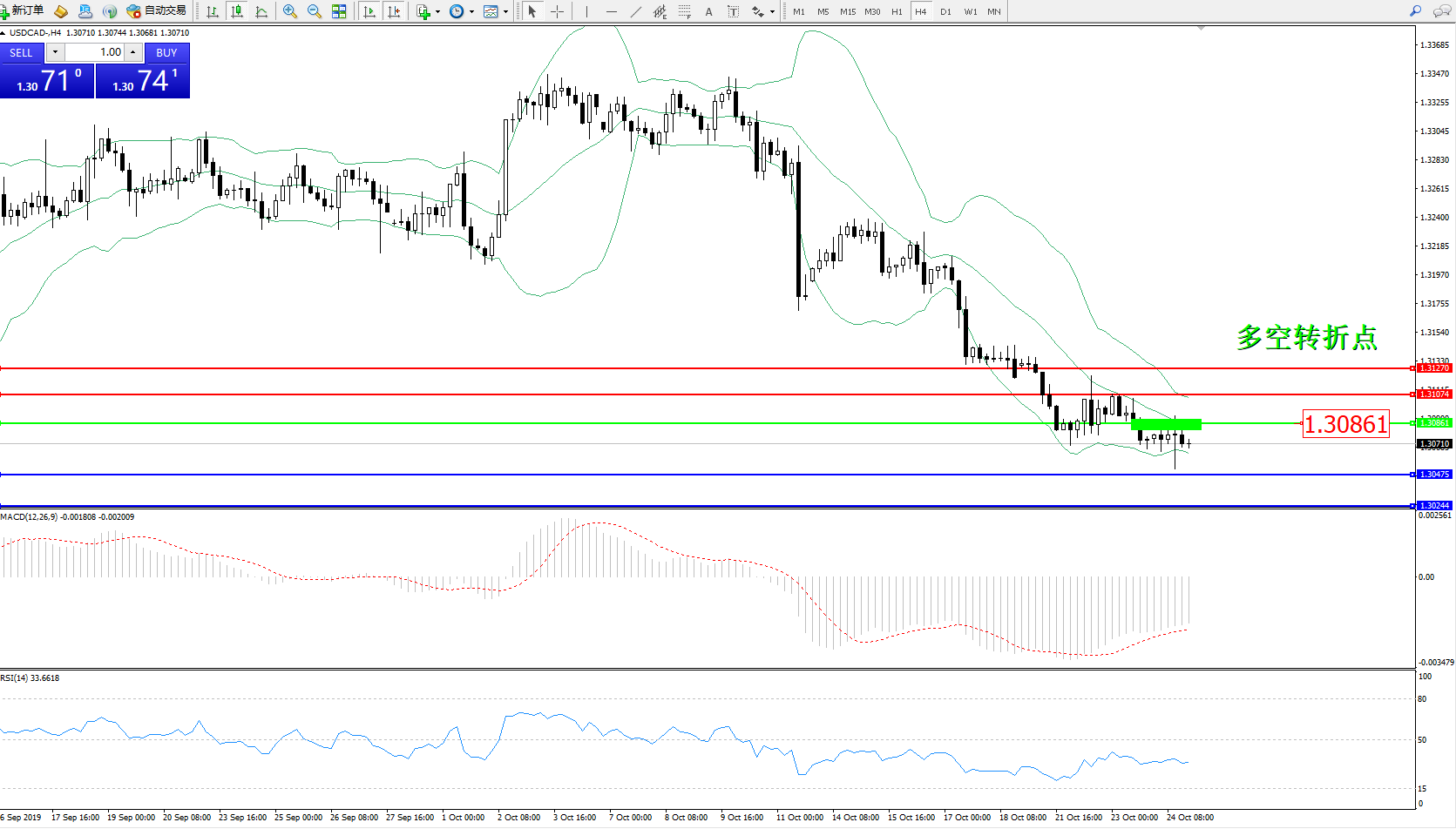 美元加元USDCAD——4小时K线图显示: