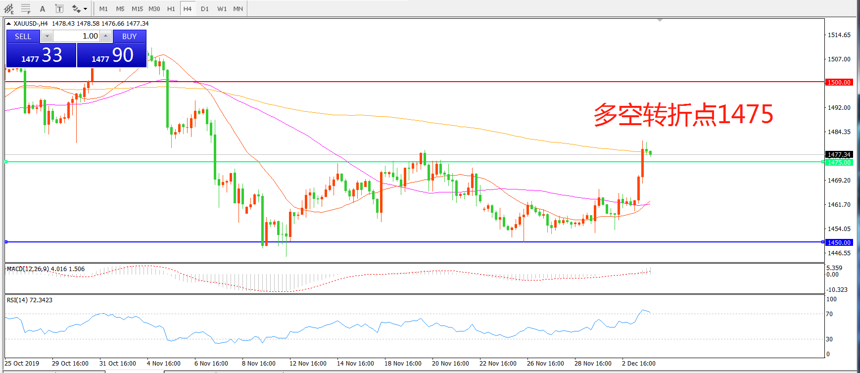多空转折点:1475.00