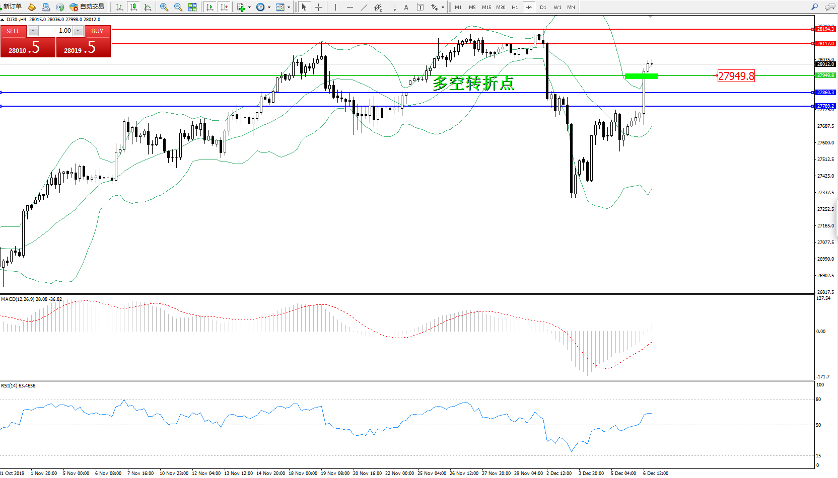 道琼斯指数126日(周五)收盘上涨337.30点,涨幅1.22%,报28015.06点。周五公布的数据显示11月美国新增非农就业26.6万,创下1月以来最高增幅。薪资增速超过市场预期,消费者信心也有所升高。能源,金融和工业股领涨,苹果公司涨至至历史新高。就业报告强劲缓解了人们对美国经济放缓的担忧,令市场再度押注美联储将维持利率不变;就业数据预示着美国肯定不会走向硬着陆。在即将跨入新年之际,鉴于稳健的消费支出,预计企业盈利状况仍然会相当健康。