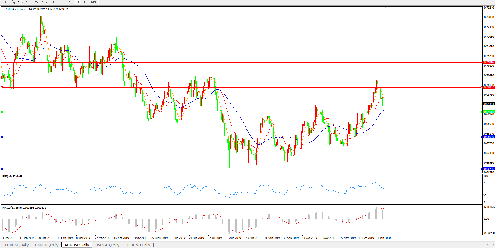 交易策略:0.6900上方看涨,目标0.7000、0.7100