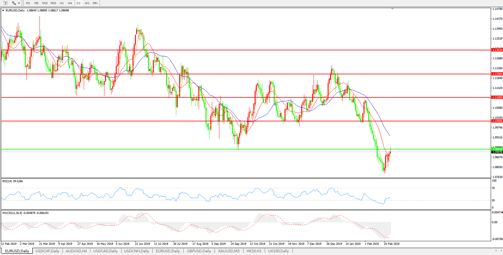 支撑位:1.0800、1.0500