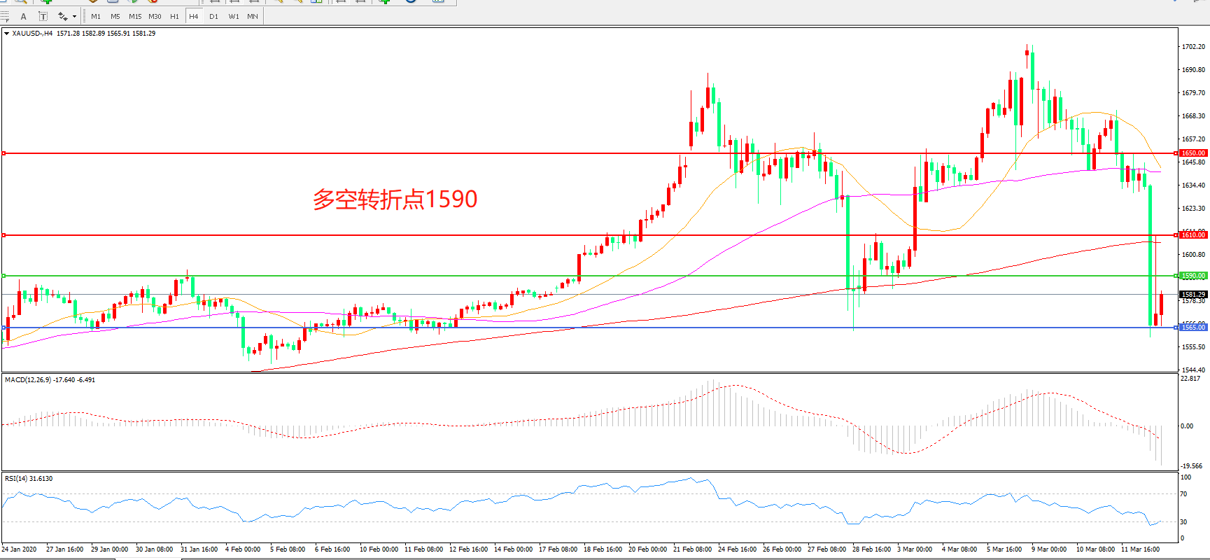 多空转折点:1590.00