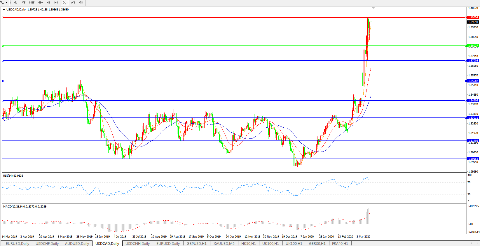美元兑加元USDCAD    日线图: