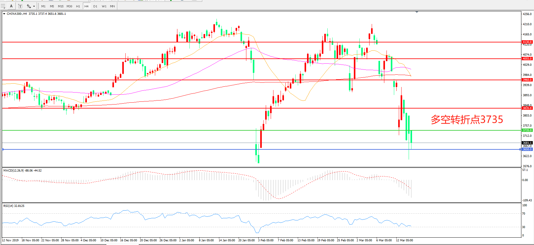 沪深300  CHINA 300   4小时图