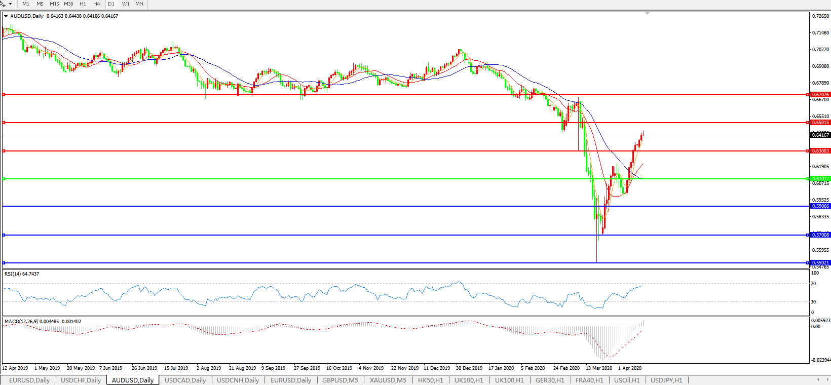 澳元兑美元AUDUSD 日线图: