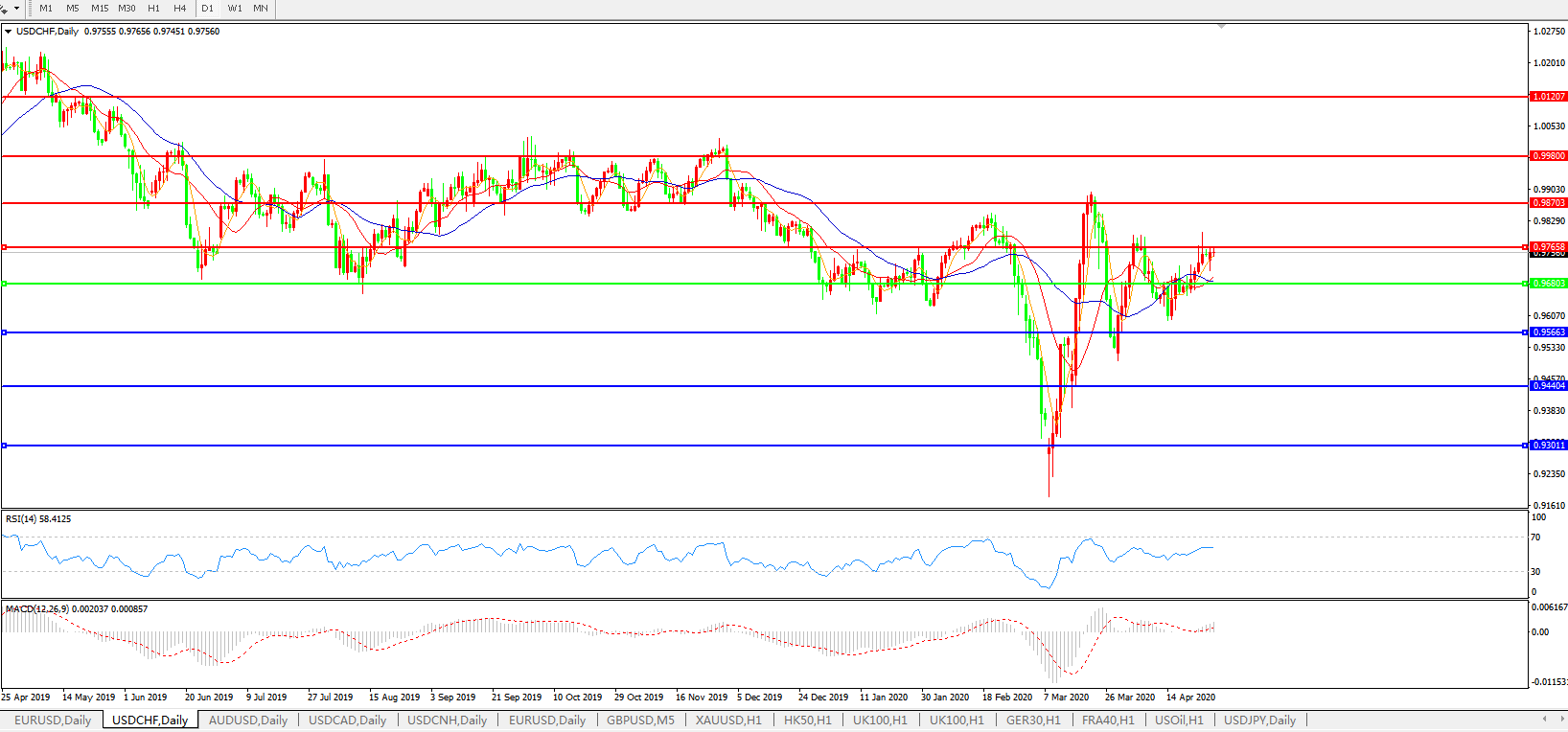 美元兑瑞郎USDCHF 日线图: