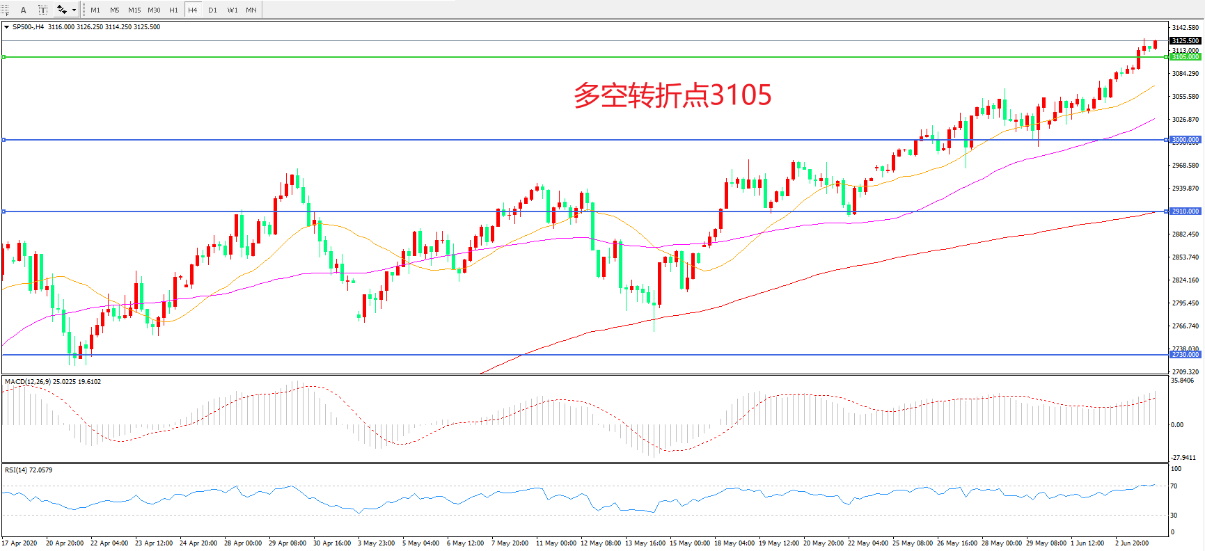 多空转折点:3105.00