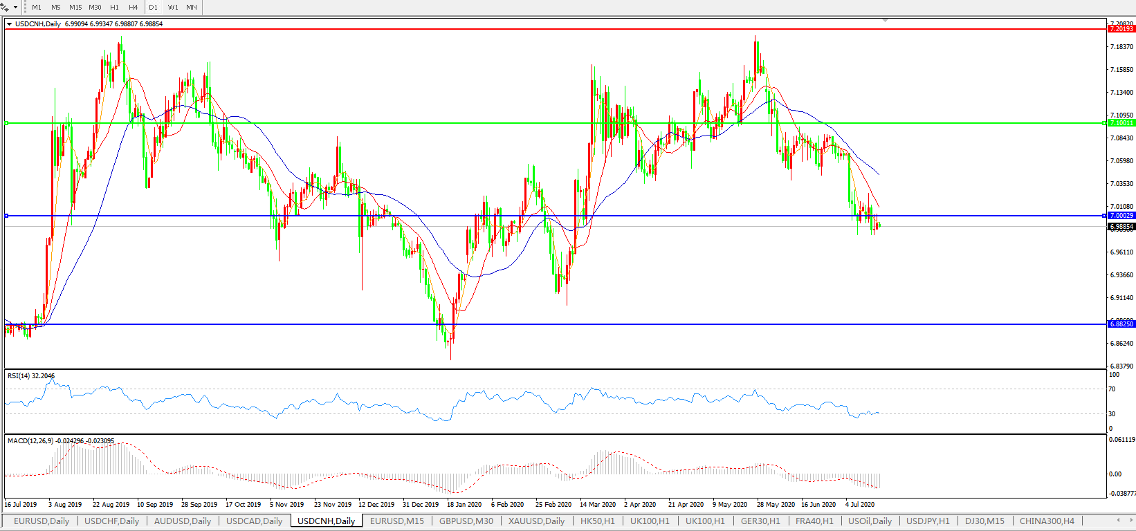 交易策略: 在7.1000之下,看跌,目标价位为7.0000,然后为6.8820。