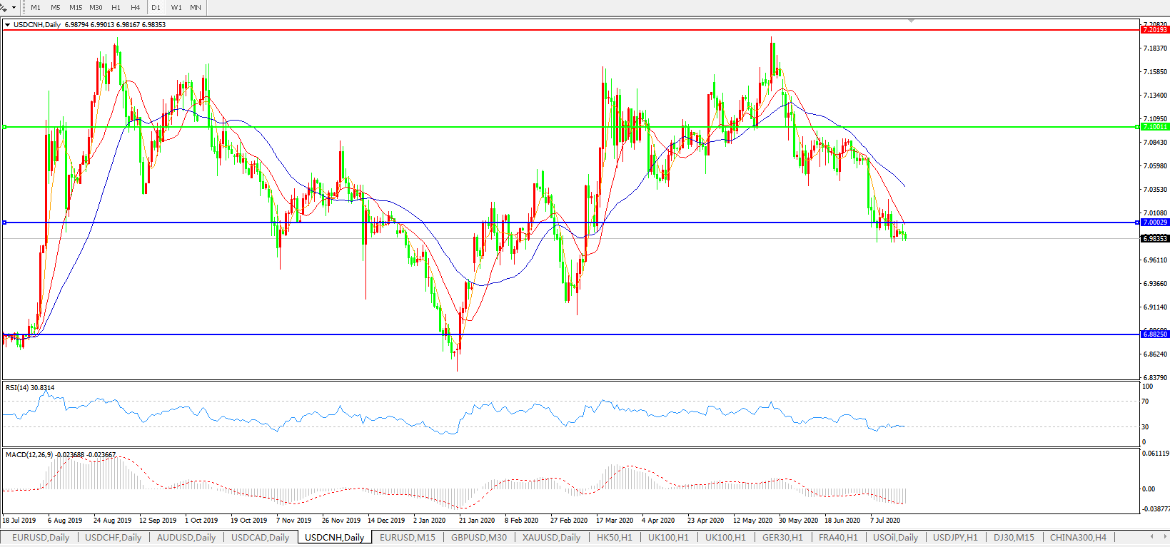 交易策略: 在7.1000之下,看跌,目标价位为7.0000,然后为6.8820。