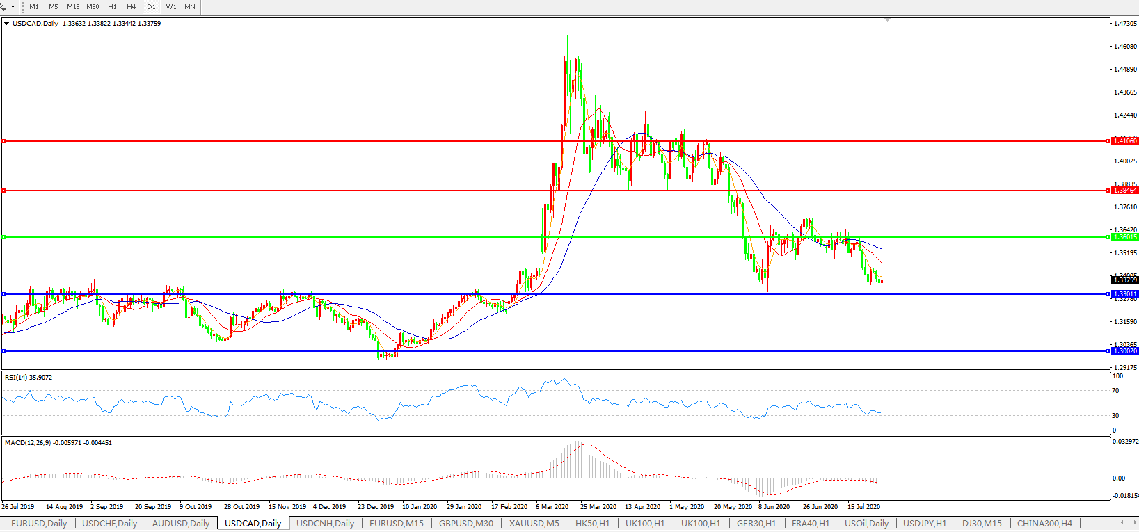 美元兑加元USDCAD    日线图:
