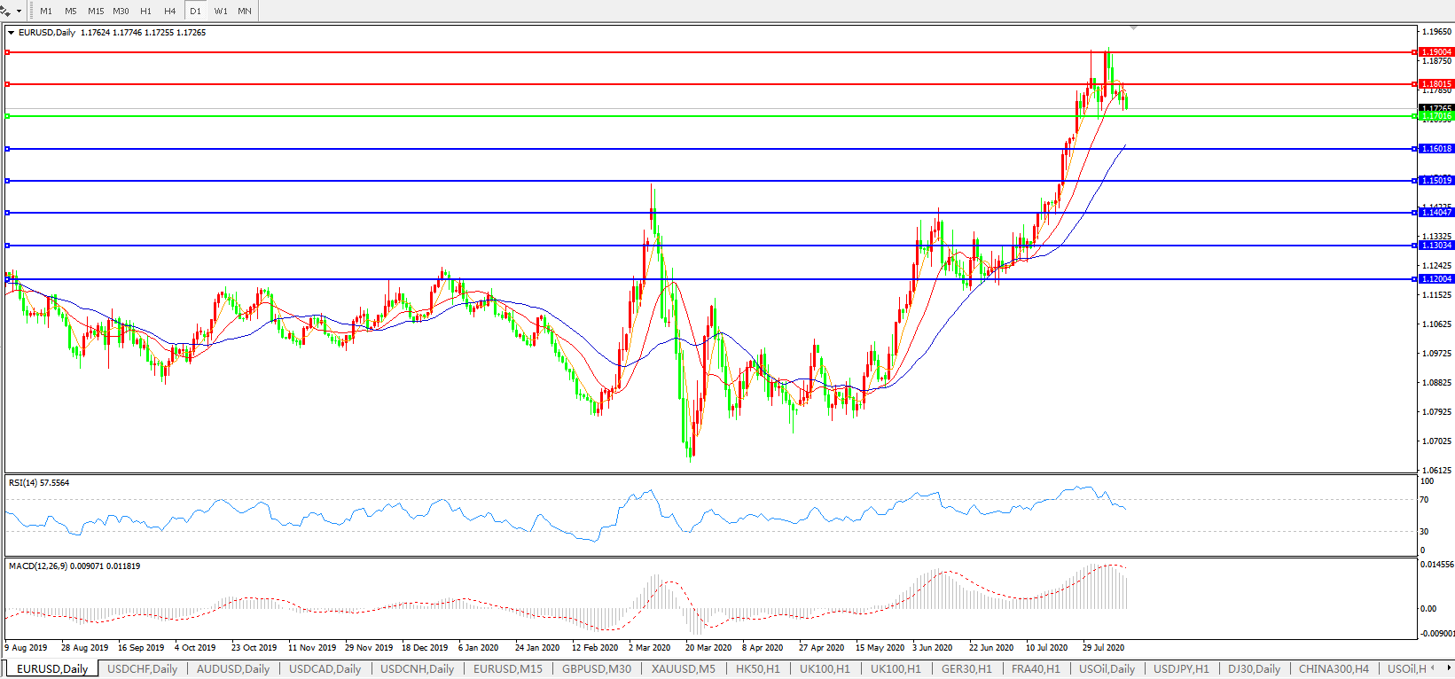 备选策略:1.1700下方看跌,目标1.1600、1.1500