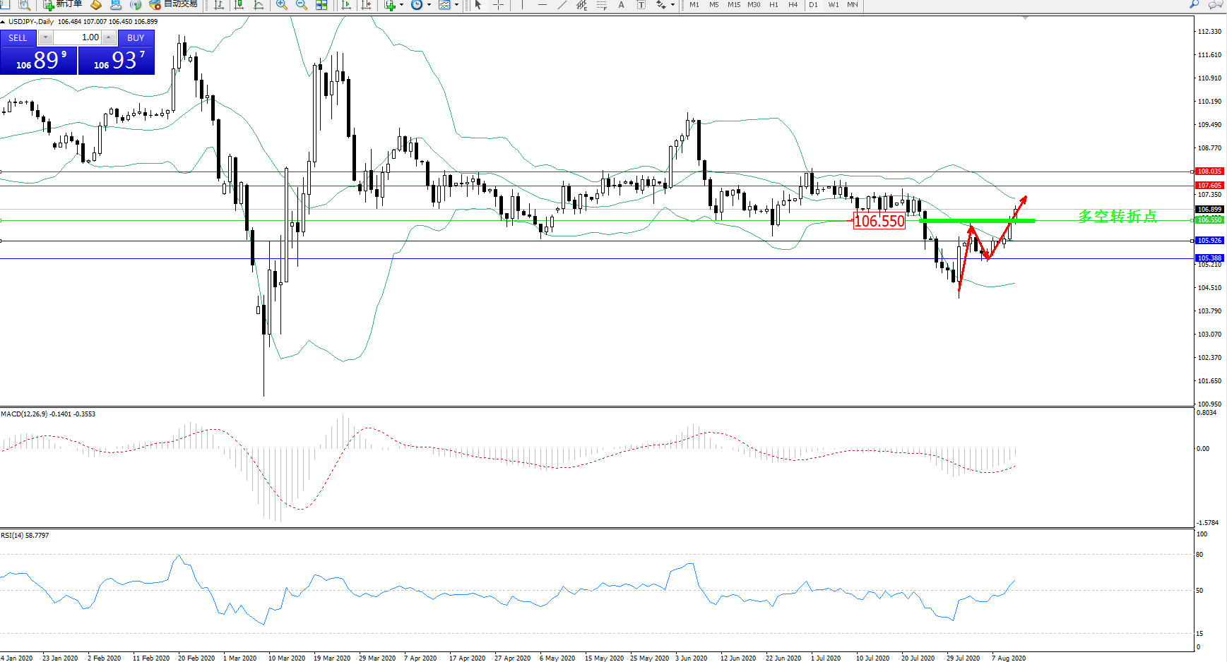 多空转折点:106.550
